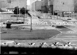 Sökülmədən əvvəl Berlin Divarının şərq tərəfi: Tikanlı məftillərlə, minalarla və tank maneələri ilə qorunan divar, kommunist despotizmin simvolu olmuşdur. |